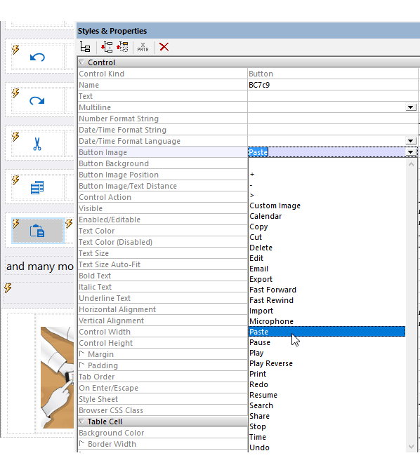 应用程序设计人员可以将自定义图标和图像添加到任何按钮,并且Altova MobileTogether还附带了一组现成的图像,用于最常用的按钮操作(例如电子邮件、快进、日历等)。