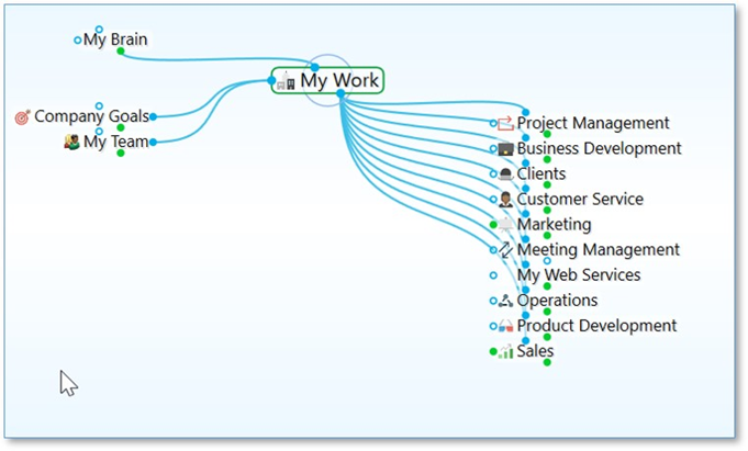 Normal视图:用于关注活动的思想并在上方显示与其父思想、在其下的子思想以及将思想跳到左侧相关的信息。下图为正常视图中的大脑: