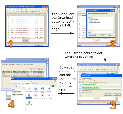 当用户单击此按钮时,文件下载器会从您的应用程序获取要下载的文件列表。用户选择其计算机上的文件夹来保存文件。