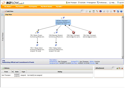 Tasking is a common workflow activity. BizFlow® enables process participants to initiate actions or punch out of formal processes to task and collaborate with others. Like email, this ad-hoc routing capability supports parallel processing. But unlike email, BizFlow provides complete visibility into task status as well as control over task distribution.