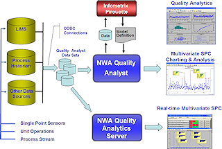 NWA and Infometrix have partnered to create fully integrated multivariate modeling and SPC charting that overcomes many of the barriers to the adoption of multivariate process monitoring and improvement techniques. NWA Quality Analyst’s new multivariate SPC module, NWA MvSPC™, combines with Infometrix Pirouette® to simplify the data-collection, model-building, and deployment process for off-line and real-time applications.