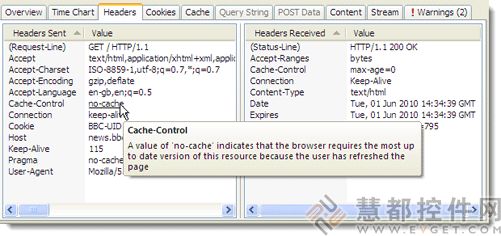 您不必是一个HTTP专家或读过HTTP RFC才能理解Headers。只需要将鼠标指针放在Headers上面,就会弹出数据提示为您解释如何使用它。