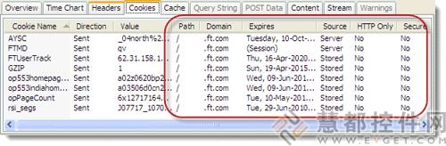 在HttpWatch选择一个请求和所有你需要知道的信息会显示在选项卡式的窗口。Cookies、Headers、Query Strings和POST数据可以被快速查看、搜索和导出到其他格式。