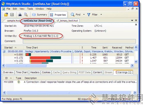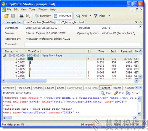 | 加载并显示在HttpWatch Professional Edition中记录的跟踪文件 | ||