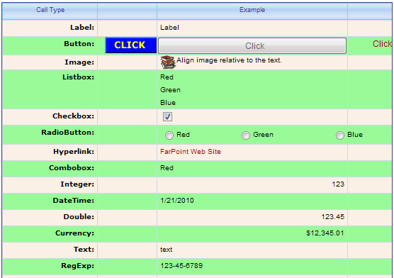 Spread includes 18 cell types that help make it easier for your user to enter the data you are expecting.